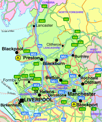 | これはランカシャーの詳しい地図 海に面してリバプール。 マンチェスターは少し内陸。 今回はプレストンにも行ってきました。プレストンの左上の ブラックプールは江ノ島みたいな行楽地で昔はよく遊びに行ったのですって。 Ça c’est la carte détaillée de Lancashire, avec ses deux grandes villes Liverpool et Manchester. L’été 2009 on s’était promenés autour de Rochdale pour découvrir le réseau de canal. Cette fois-ci nous sommes allés à Preston aussi. |