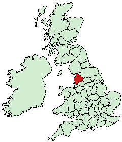 | オレンジ色がランカシャー 東へ行くと 西ヨークシャー A l’est de Lancashire, se trouve la région de West Yorkshire. Cette fois-ci nous sommes allés jusqu’au centre de West-Yorkshire. |