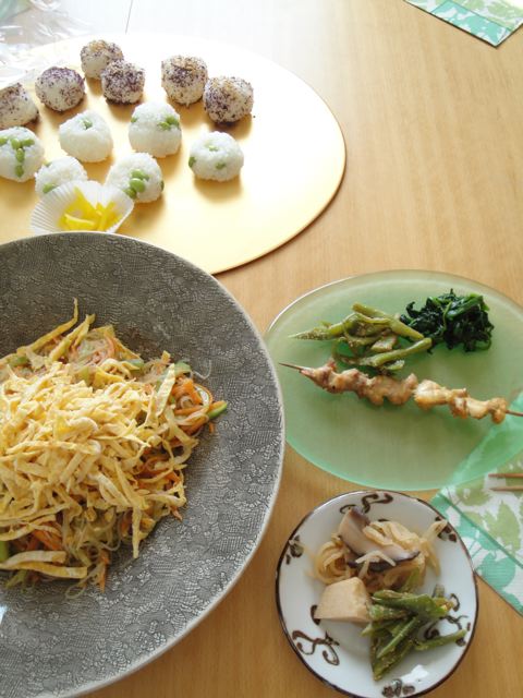 なんて美味しそうな和食料理に、なんて麗しい村の女性方(はあと)。手毬おむすびも焼き鳥も、なんだかとってもおしゃれで、わたしの作るグテッとしたのと全然違う~!!!