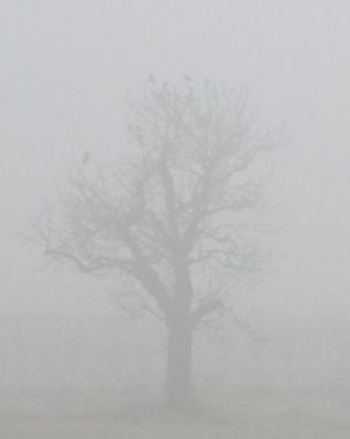 今朝少しだけですが、外の空気を吸いに歩きに行ってみました。畑の道は、霧におおわれて景色がちっとも見えません。細かい霧雨、足下も凍っているし、早々に切り上げて帰ってきました。