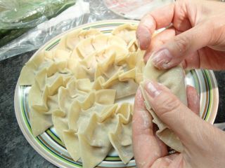 餃子の皮はウイーンの韓国スーパーで買ってきたのを冷凍してあったのですが・・・これをおもむろに解凍してと。手始めに 「水餃子」(ゆでたの)と「焼き餃子」(フライパンで焼いたの)を作ってみたら、うまくできたので、金曜の晩は RoswithaとFritzをご招待して 「熊ネギ餃子デイナー」をしました。sachanは酢醤油で食べるのが好きだけど、醤油漬けも出しておいたら、それもつけながら「美味しい美味しい」とモリモリ食べてました。