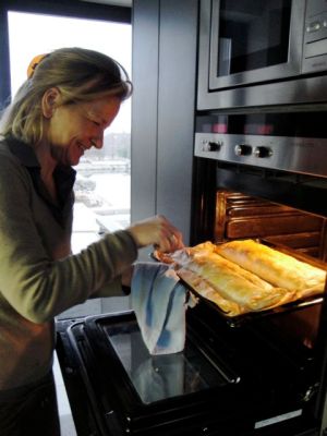 On voit très souvent ‘Apfulstrudel’ (aux pommes) ou ‘Marienstrudel’ (aux abricots) et ce sont des desserts vraiment très autrichiens: elle m’a expliqué qu’on pouvait acheter la pâte toute faite pour mettre des légumes, comme elle a fait aujourd’hui.