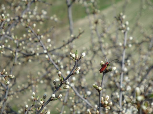 | Un petit insecte rouge sur une branche pleine de fleurs… つぼみがいっぱい とても小さな白い花です ここ数日のうちに満開になりそう。また見に来なくちゃ・・・ カミキリムシでしょうか きれいな赤ですね |
