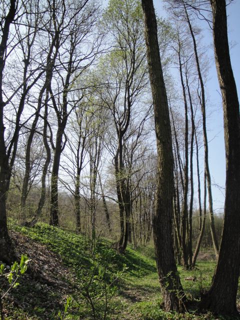 | C’est comme une petite vallée. Imaginez-vous, complètement remplie de chants d’oiseaux… このあいだも歩いた谷から斜面を登る道。 鳥のさえずり声がいっぱいでした。 |