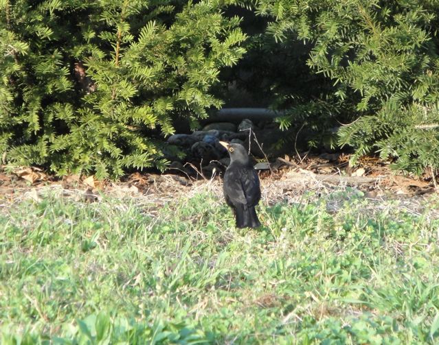 | 家に帰る途中 道ばたにクロウタドリさんが Deux merles noirs étaient en train de se balader le long du chemin… |