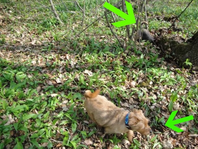 緑がいっぱいの林を散歩するのは人間にとっても素敵なひとときだけど・・・何とわんこたちも「熊ネギ」のこのニンニクみたいな匂いが大好き♥ いっぱい生えている原っぱの真ん中を「ごろごろ」転がったり、あっちこっち匂いをかいでまわったり、たまにはかじってみたり・・・見てる人間もうれしくなるぐらい、大はしゃぎの大喜びでしたヨ☆