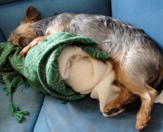 さて、その横でおりこうさんで寝ているこのコはスマートな赤ちゃん犬テキーラちゃんです。最初もっと小さくて大きくなっても2kgぐらいと言われてたけど、半年ぐらいでずいぶん大きくなりました。(下の写真では下右に歩いてます)
