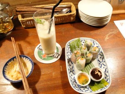 | 吉祥寺にお出かけして「生春巻き」そのほか いろんなタイ料理を食べました。楽しかった〜♪ Je suis allée dîner avec N-Tomo-chan dans un restaurant thaï à Kichijoji… Super ambiance! |
