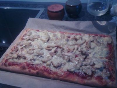 | そして一方BBではバーニーちゃんがちゃーんとお料理してますヨ こんなピザ作ったり 日曜日の今日はお得意料理のローストチキンにマッシュポテト♡ Manchester Cityの試合を観戦の予定。ふむふむ。home Alone pizza!! Yummy @Breitenbrunn, by Bernie |