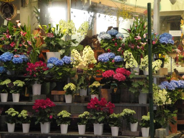 出てきたら、もう日暮れ。向かいのお花屋さんの店頭が