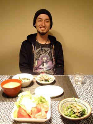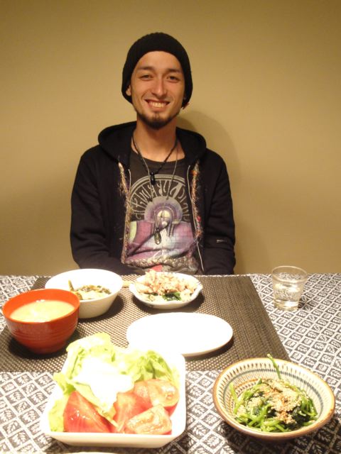 野菜いっぱいの「おうちご飯」でお酒飲んで、泊まっていきましたヨ。