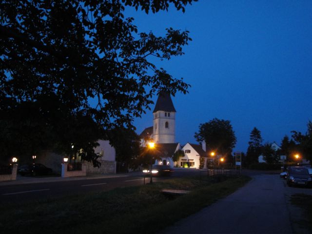 Hier soir près de l’église… je suis descendue à pied pour aller chez Georg et Katrin. On entend plein d’insectes et de grenouilles. C’est vraiment les sons de l’été…