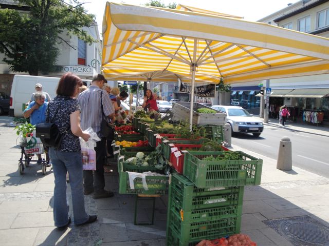 今朝はノイジーデルの街まで買い物に行ってきました。金曜日は「市場」が出る日。冬のあいだお休みだった八百屋さんがいるかな〜?と行ってみたら、いましたよ!「長蛇の列」(←こっちとしてはネ)で大賑わいの大忙しでした。大好きな「シーウィンケル」のでっかいピーマンや真っ赤なトマトを仕入れてきました。