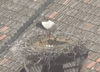 このウェブカムに映っているところだけでなくて、買い物のとき道を通ると、ほうぼうの村の屋根の上でコウノトリさんたちが子育て中。赤ちゃんたちが元気に育ってると考えるだけで、なんだかうれしい季節です。
