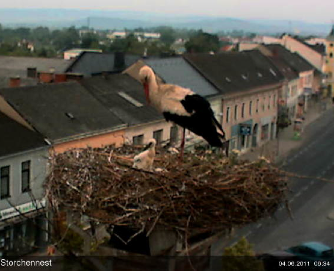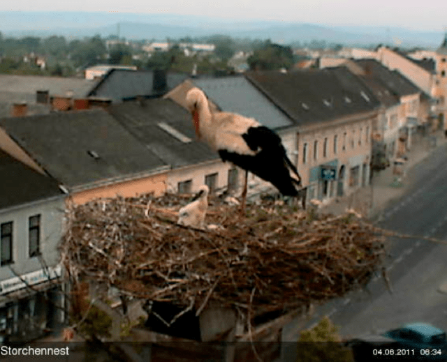 ・・・こういう大風や雨のときは、「コウノトリさんたちはどうしてるかな?」と考えます。5月の半ば日本から戻って来た頃はまだタマゴを転がしてたのだけど、5月の終わりには赤ちゃんが誕生。最初はとっても小さくてweb-cam越しではあまりよく見えなかったけど・・・この数日はよく見えるぐらいの大きさになって可愛い♡