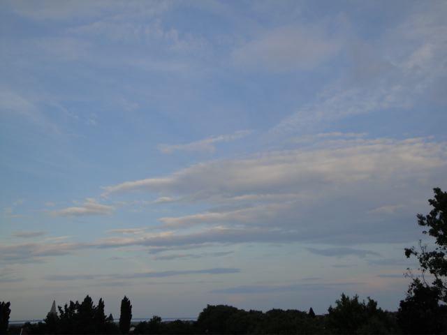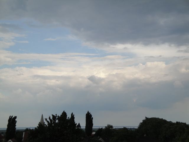 Hier je me suis réveillée à 3h du matin à cause du vent si fort qui s’abattait sur notre maison. Ensuite j’ai pu voir le soleil arriver. Toute la journée, on a eu un temps bien orageux, avec des gouttes de pluie occasionnelles, ensuite tonnerre dans la soirée… Dans ce cas-là je pense bien à nos bébés cigognes… ils ne sont vraiment pas à l’abri dans ces nids qui sont partout dans notre coin, les parents cigognes doivent les protéger, mais quand il fait mauvais je pense à eux. (ok je parle là encore des animaux!!! hehe♪)