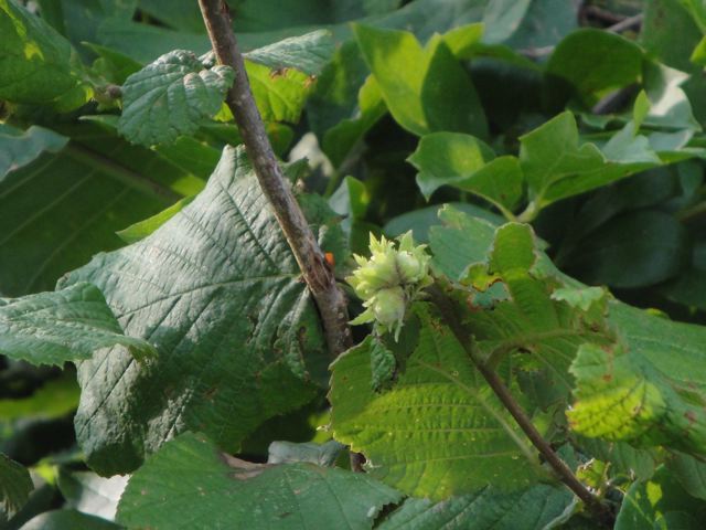 ヘーゼルナッツはね あまりにも葉っぱが増えてて、ちょっとわからなくなってしまったけど、「このへんだったよねー」とよく見たら、実がなってたの。