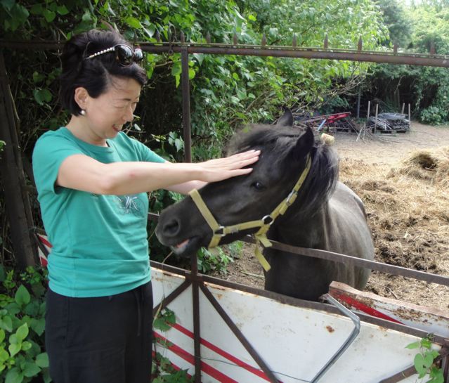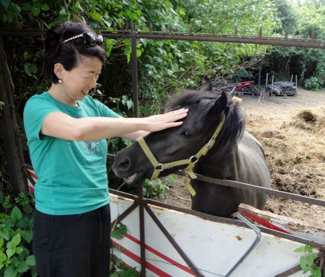 4. yuukoさん 今日はね 忙しい土曜日でした!スーパーへ買い出しに行ったあと、また子馬くんに会えましたよ。今日はニンジンもっていなくて、なぜただけだけど、とても喜んでくれて、ふーこら ふーこら 暖かい息を吹きかけてくれたわ。