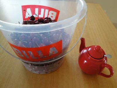 ‘Cherry extravaganza’ continue dans notre village: la fête de cerises dimanche dernier et dans tous les jardins les fruits prolifèrent… j’ai tendance cette année à en recevoir vraiment bien plus que l’an dernier (on n’a pas à en acheter en fait) et je n’ai pas arrêté de confectionner de la confiture.