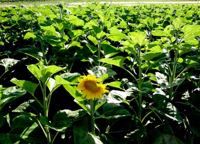 今日はね 隣の村まで車で出かけたら、国道沿いの畑にも ヒマワリがぼちぼち咲いているのが見えました