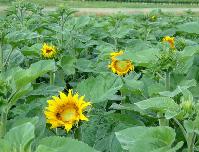 去年はここの畑 何もなかったのに、今年はきゅうに ヒマワリが植えられています。不思議・・・