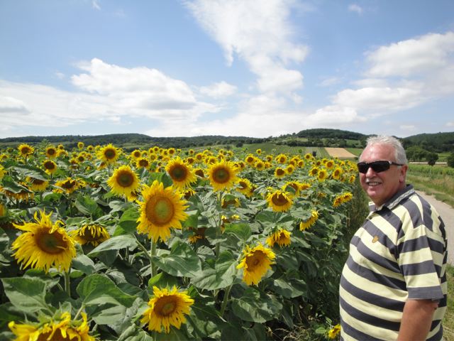 Le champs de tournesol … super allongé et plein plein de fleurs, qui sont toutes orientées vers le sud.