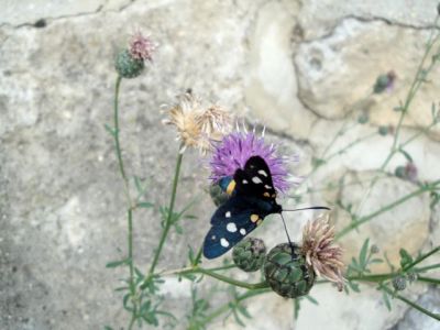 おしゃれなヒトは、またカノコガ?斑点にオレンジが混じっています。