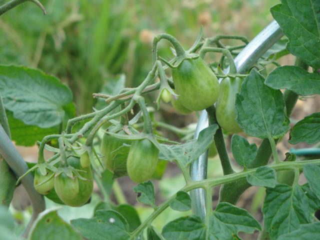 Elles sont encore vertes… Attendez encore un peu, qu’elles deviennent bien rouges! かわいいトマトの赤ちゃんたちが どんどん出ていますよ〜 ぐんぐん伸びて元気です。