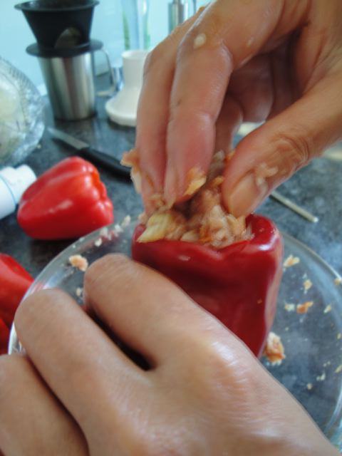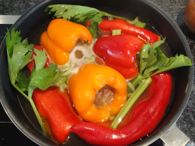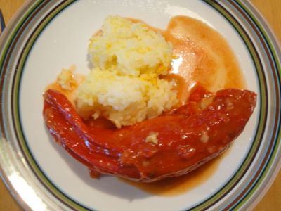 ピーマンの肉詰めは、いつもオーブンで焼いてたので、「煮込んでトマト味にする」ってところが新しかったのでした。