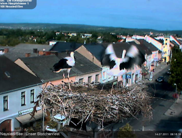 Côté cigognes, je remarque que les jeunes (eh oui ce ne sont plus des ‘bébés’!) commencent à déplier leurs ailes. Ils sont presque prêts à commencer leurs exercices pour s’envoler…