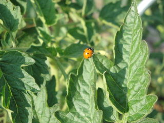トマトのジャングルでがんばってたテントウムシくん♪ ちょっとピンぼけ