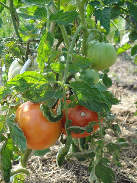 Ok c’est quand même très important de vous mettre cette photo de nos premières tomates récoltées ce matin – en plus c’est le 14 juillet! – (non on n’a pas fêté les tomates aux feux d’artifice) elles étaient très bonnes…. imaginez-vous qu’elles ont été vite mangées, dans les 5 minutes qui suivaient la récolte!