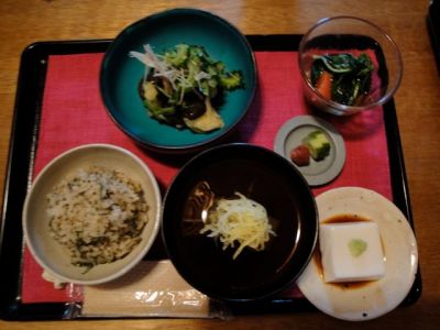 | Repas végétarien dans un petit restaurant super chic Narutoya-Tenzo. Vraiment vraiment très bon … j’ai envie d’y retourner… 小町通りの人気のお店 なるとや典座で 美味しい昼食でした。 ズッキーニの天ぷら+ゴーヤの塩揉み 茗荷+海苔のたれ モロヘイヤとトマトのおひたし、冬瓜の冷たい汁、胡麻豆腐・・・ 日本でしか食べられない美味しいものです。野菜づくしでおなかがいっぱい! |