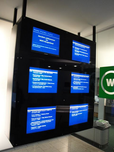 Première question: ‘Est-ce que je vais bien trouver le bâtiment?’ Il faut y aller en voiture, je n’ai jamais été là… mais pas de pb, j’ai trouvé le gros bâtiment de WIFI à Eisenstadt et je suis même arrivée 15mn à l’avance.