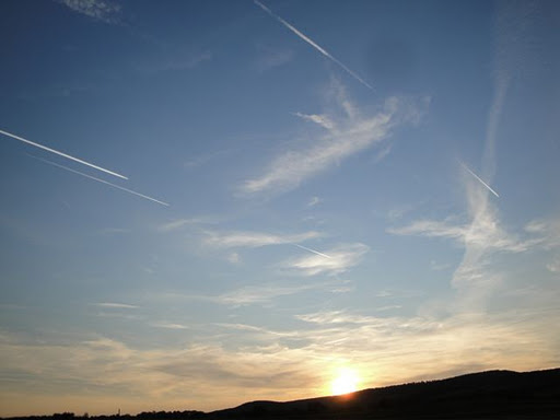 あの丘の向こうがウイーンの空港だから、いつでも飛行機雲は見られるけど 昨夕はとりわけ鮮やかに線をひいいていました☆