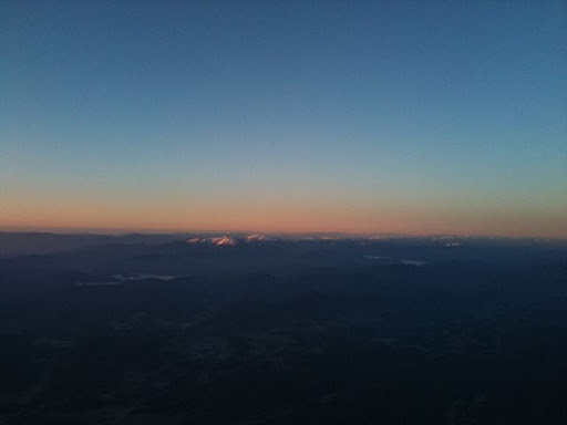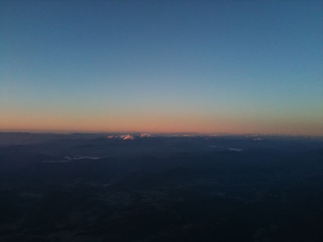 | ウイーンからケルンへ向かう飛行機のなかで夜が明けました De Vienne à Cologne… juste 1h et demi de vol. Nous sommes partis très tôt le matin samedi. |