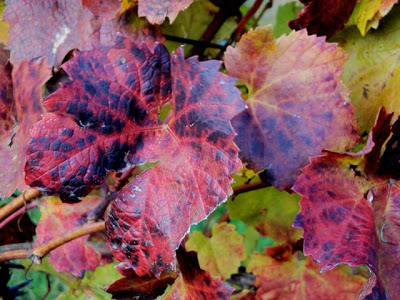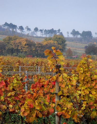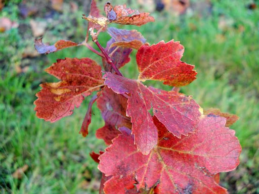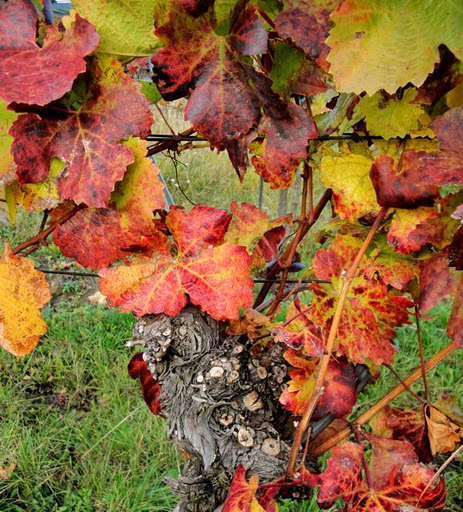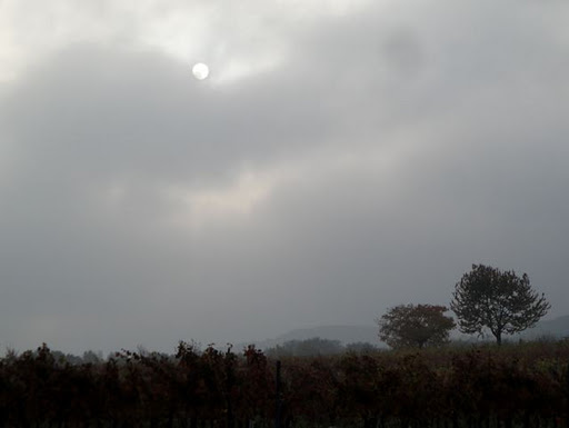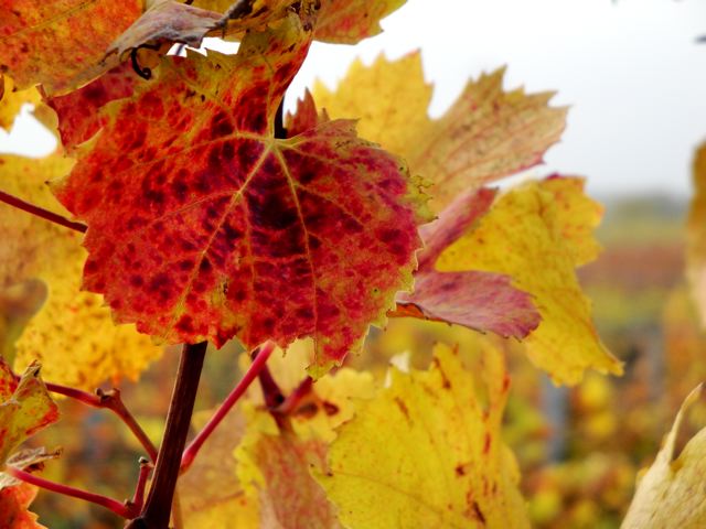 Le 1er novembre, c’était le premier matin extrêmement brumeux… tout était complètement couvert d’une couche blanche… mais en revenant de l’aéroport dans l’après-midi, j’ai vu qu’il faisait bien meilleur … alors rebelote! Je suis partie collectionner les belles couleurs dans les champs. Les lumières étaient très belles, le tout encore un peu brumeux et c’était une drôle d’ambiance. Les feuilles de vignes sont toutes sèches maintenant. Je pense bien que c’est leur dernier splendeur que j’ai la chance d’apprécier…