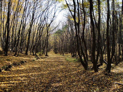 下り坂の林はもう大部分の葉っぱが落ちちゃってますね