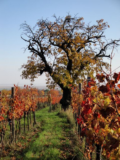 林をつきぬけると、いつも散歩しているブドウ畑の上のほうに出ます。いや〜ホントによく歩いた!帰りはブドウ畑を横切って近道しました。こういう景色も、また趣向が違っておもしろいですね。