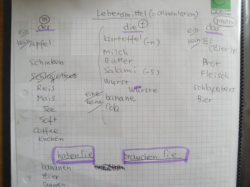 右は「中性名詞」(卵、パン、肉、生クリーム、ビール)・・・ひえええええ〜 こりゃタイヘンですわ・・・