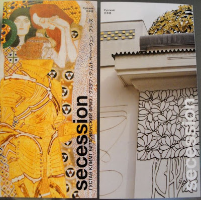 この建物は、19世紀末のウイーンで既成の芸術に異議を唱えて新しい芸術を創ろうという運動をはじめたグループ=「ウィーン分離派」が、自分たちの芸術作品を展示する会場として新しく建てたもので、哲学者のウイトゲンシュタインのお父さん(実業家だった)が資金を出し、敷地はウイーン市が無料で提供したのだそうです。ふむふむ・・・ 設計はオットー・ワーグナーの弟子であったヨゼフ・マリア・オルブリッヒ。立ち上がった当初は非難の嵐がごうごうと沸き上がったそうです。「分離派の第2回展示会」に出品されたクリムトの壁画『ベートーヴェン・フリーズ』が、長い行方不明の時代〜オーストリア政府に取得されたあとの修復作業を経て、展示されています。