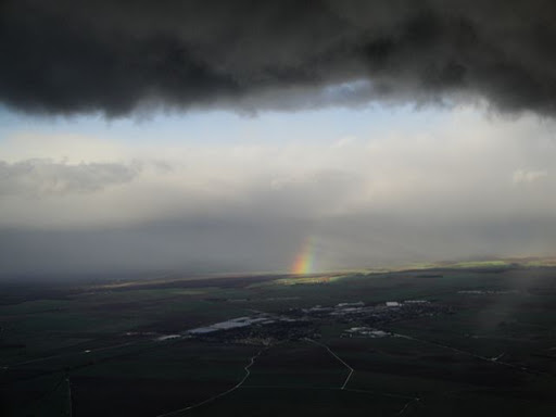 | Juste avant l’atterissage à CDG… un très joli cadeau dans le ciel extra orageux! パリCDGに着陸直前 すごい雷雲で飛行機が大揺れ・・・でも虹が見えてうれしかった♪ |