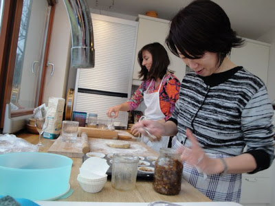 月曜はシギさんとジョニーさんのうちに材料持参して、「クリスマスお料理教室の第2弾」。シギさんに教えてもらって、ぺちゃくちゃおしゃべりしながら「ミンスパイ」を作りました。