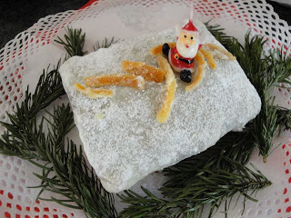 今年は マーマレードにラム酒を加えて暖めたものを、刷毛で塗って、そのうえから薄く延ばしておいたマジパンを貼りつけました。