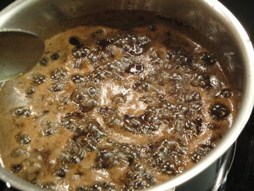 バターと砂糖が溶けてくるので、全体をよく混ぜて、そのまま15分ぐらい中火でぐつぐつ煮ます。
