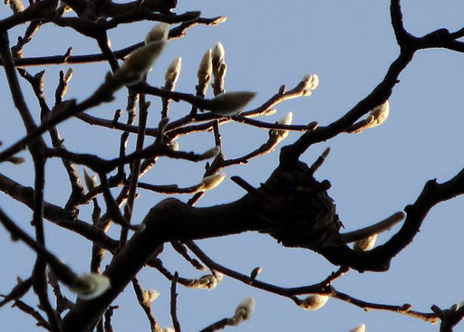Mon grand arbre de magnolia porte déjà plein de pousses qui attendent le printemps.