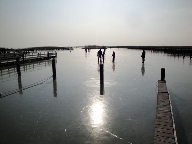 うわあ〜 完全に凍ってて、スケートを楽しんでる人たちがいっぱいです。