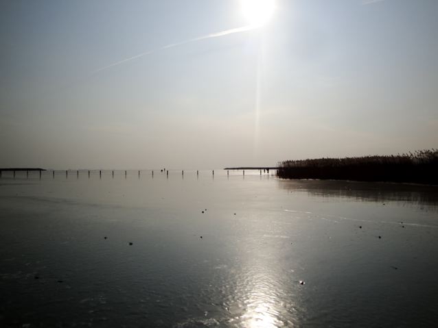 Eh oui, c’était donc complètement gelé, j’ai vu des gens très loin … Je me suis un peu aventurée pour marcher sur la surface glacée. Pas aussi glissant qu’on ne croie. Il y avait des familles entières qui arrivaient pour patiner avec des enfants et quand j’ai repris la voiture pour rentrer vers 13h30, il y avait encore plein de voitures qui arrivaient. C’est un gigantesque patinoire naturel à Breitenbrunn, comme l’an dernier (cliquez ici pour voir le patinoire naturel de déc 2010).
