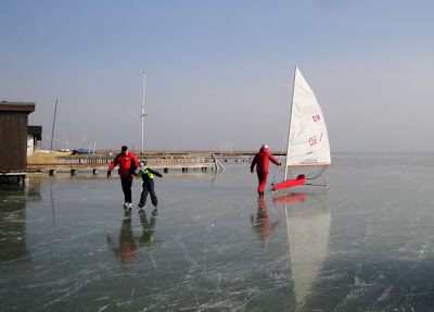Eh oui, c’était donc complètement gelé, j’ai vu des gens très loin … Je me suis un peu aventurée pour marcher sur la surface glacée. Pas aussi glissant qu’on ne croie. Il y avait des familles entières qui arrivaient pour patiner avec des enfants et quand j’ai repris la voiture pour rentrer vers 13h30, il y avait encore plein de voitures qui arrivaient. C’est un gigantesque patinoire naturel à Breitenbrunn, comme l’an dernier (cliquez ici pour voir le patinoire naturel de déc 2010).