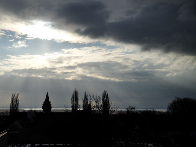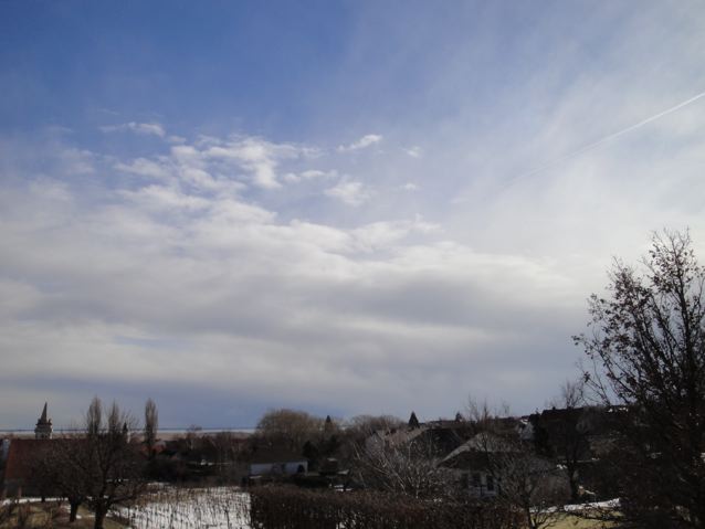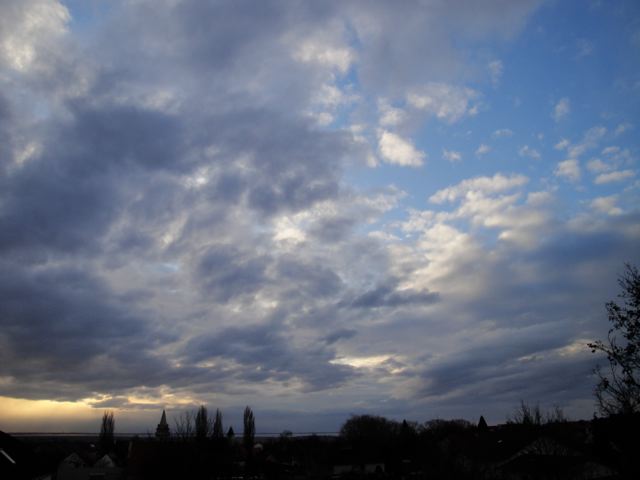 | 16 février, vers 8 h… ensuite toute la journée c’était tout gris… pas drôle. 8時ごろ こんな素敵にドラマチックな空だったのに、このあとはずうっと灰色一色ww